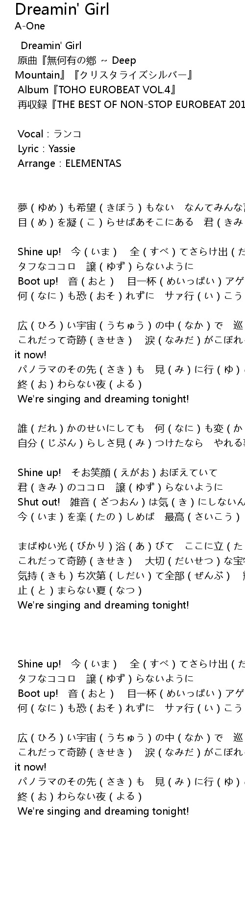| 夢(ゆめ)も希望(きぼう)もない なんてみんな言(い)ってるけど | |