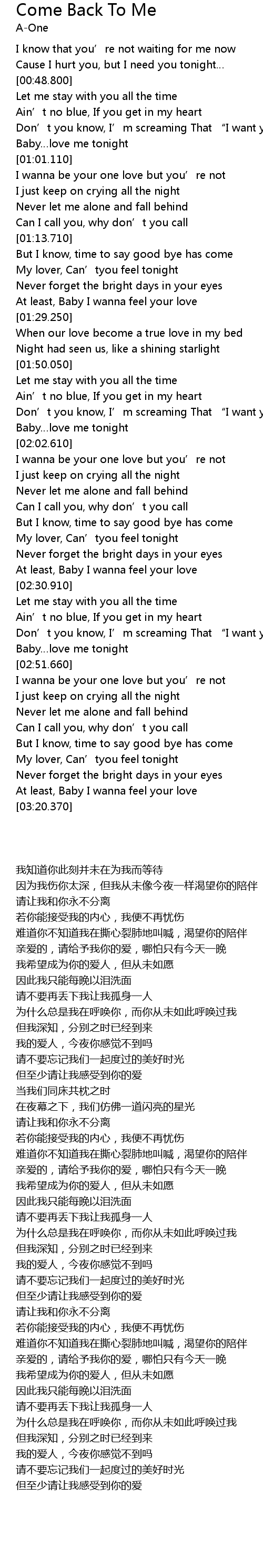 | Song | Come Back To Me |