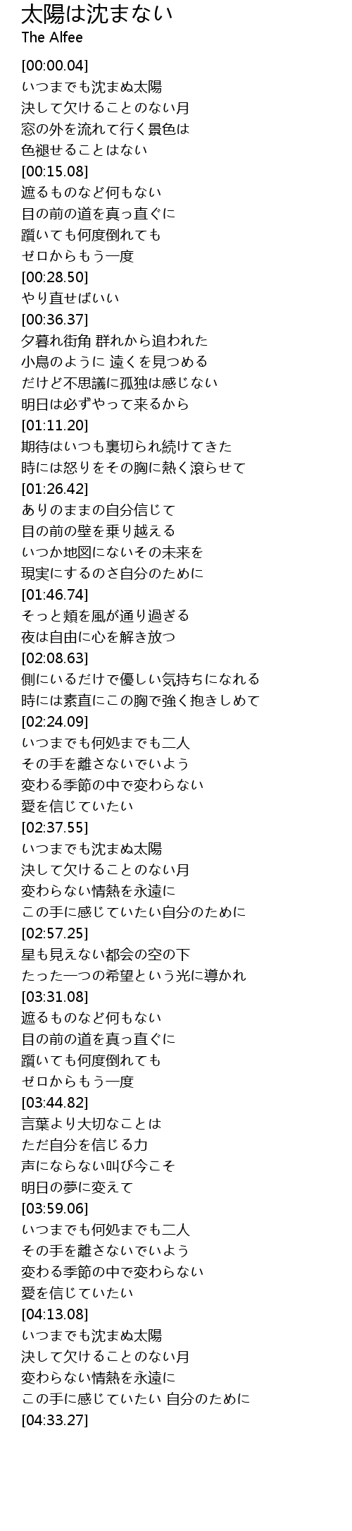 | [04:13.78] | いつまでも沈まぬ太陽 |