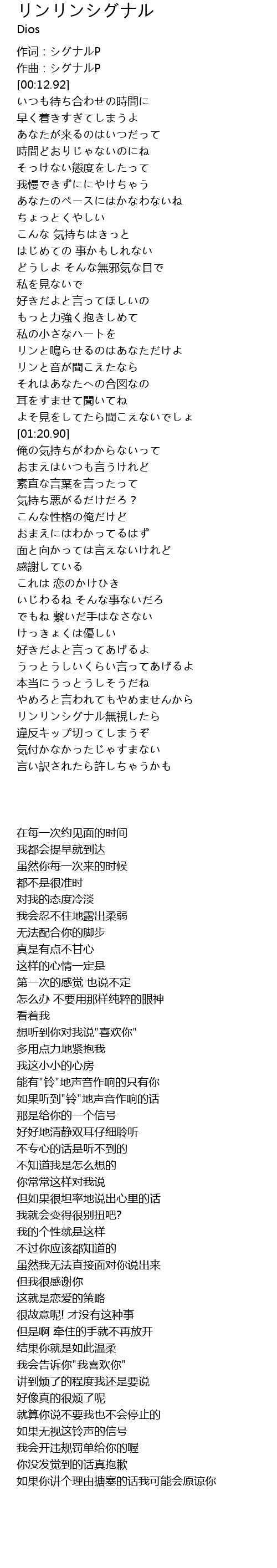 | [01:02.64] | リンと鳴らせるのはあなただけよ |