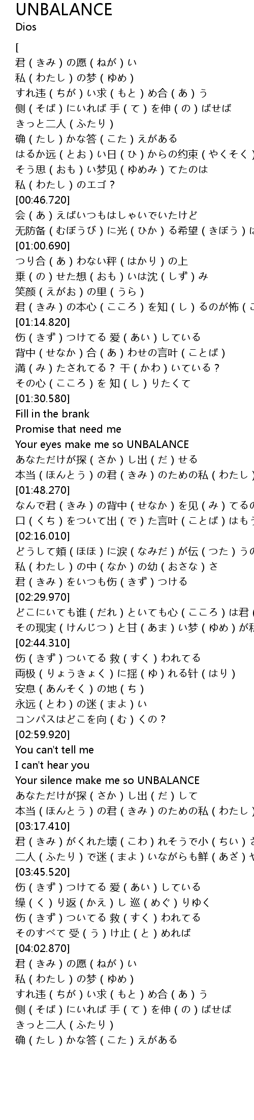 | [03:03.120] | Your silence make me so UNBALANCE |