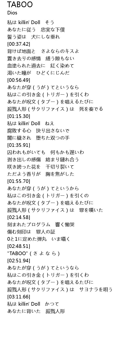 | [02:50.59] | "TABOO"(さ よ な ら) |