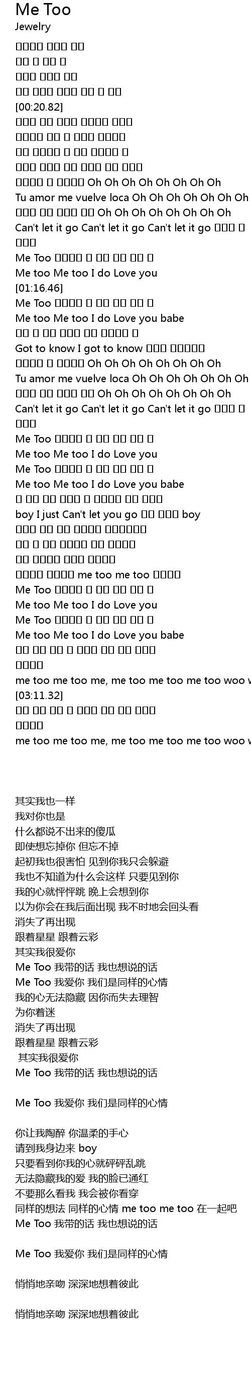 | [02:51.02] | Me Too 사랑한단 말 나두 우린 같은 맘 |