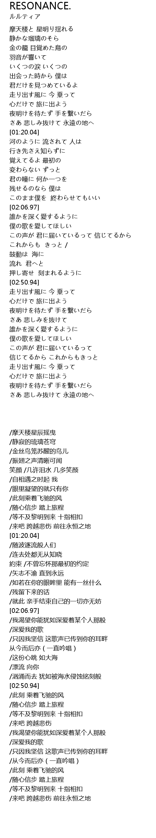 | [01:11.46] | さあ 悲しみ抜けて 永遠の地へ |
