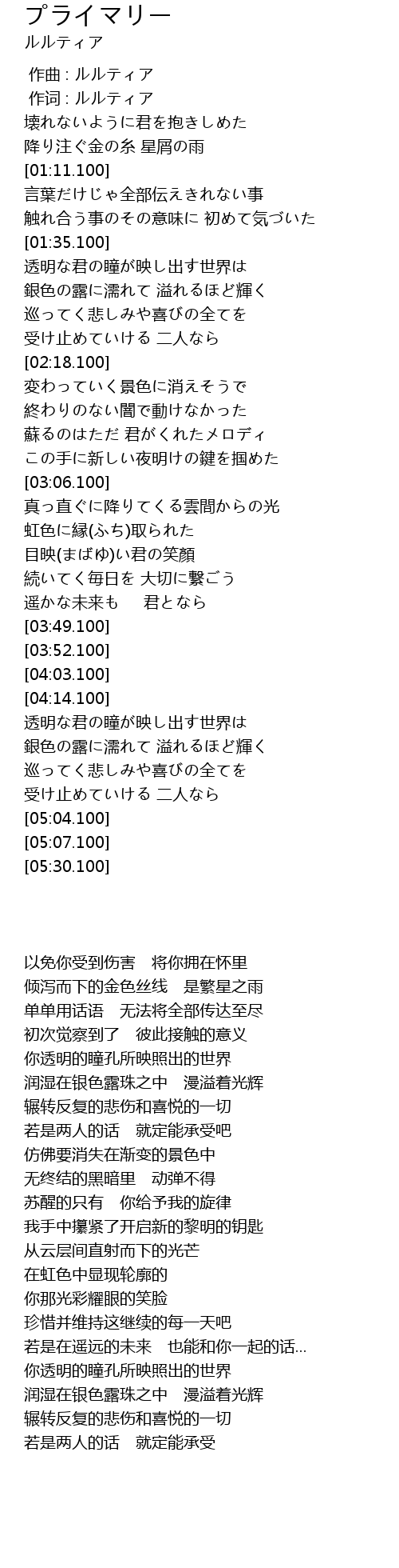 | [00:01.00] | 作词 : ルルティア |