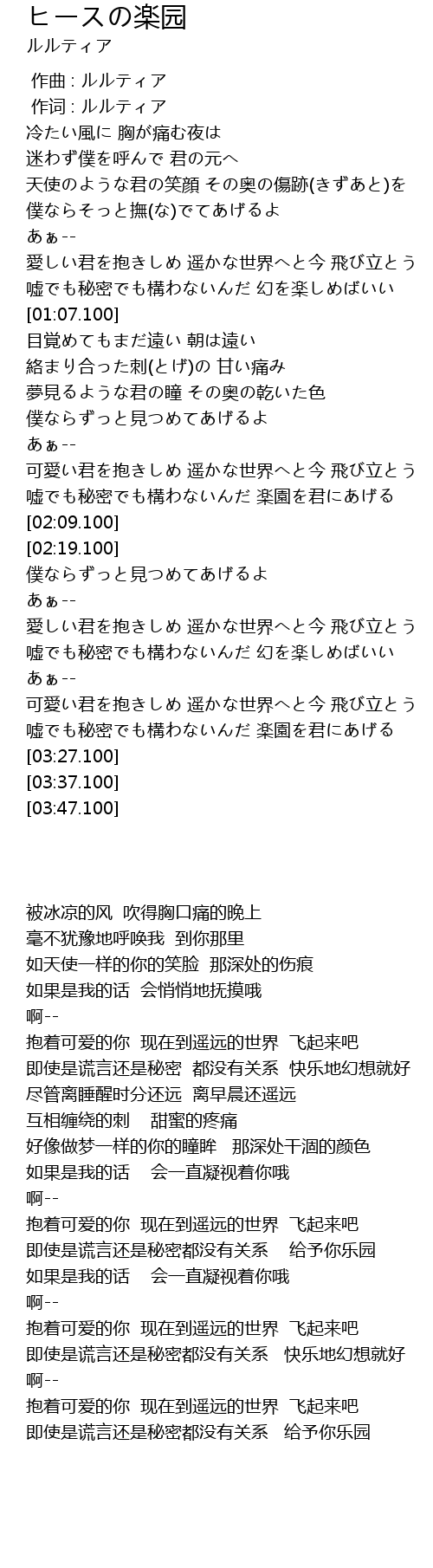 | [00:01.00] | 作词 : ルルティア |