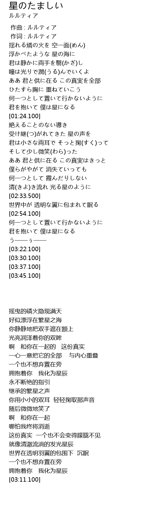 | [02:22.100] | 清(きよ)き流れ 光る星のように |