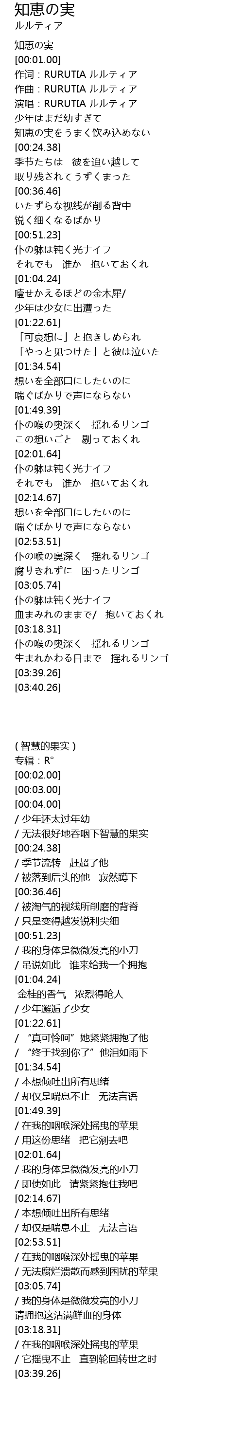 | [00:18.47] | 知恵の実をうまく饮み込めない |