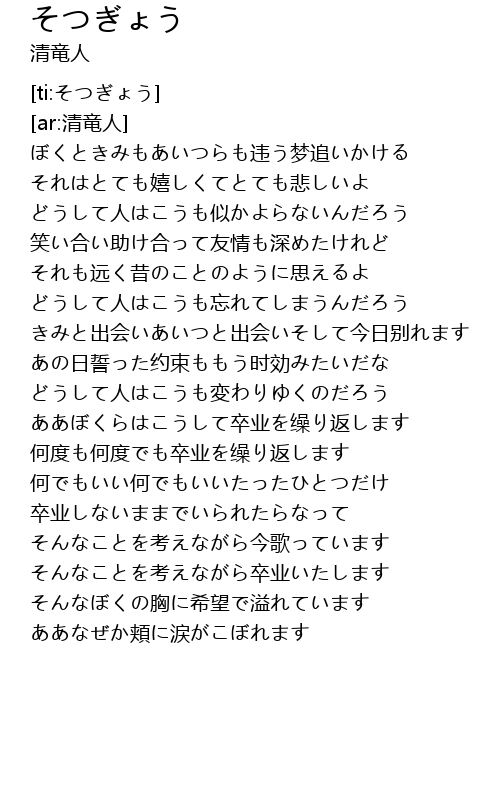 | [01:54.882] | ああぼくらはこうして卒业を缲り返します |