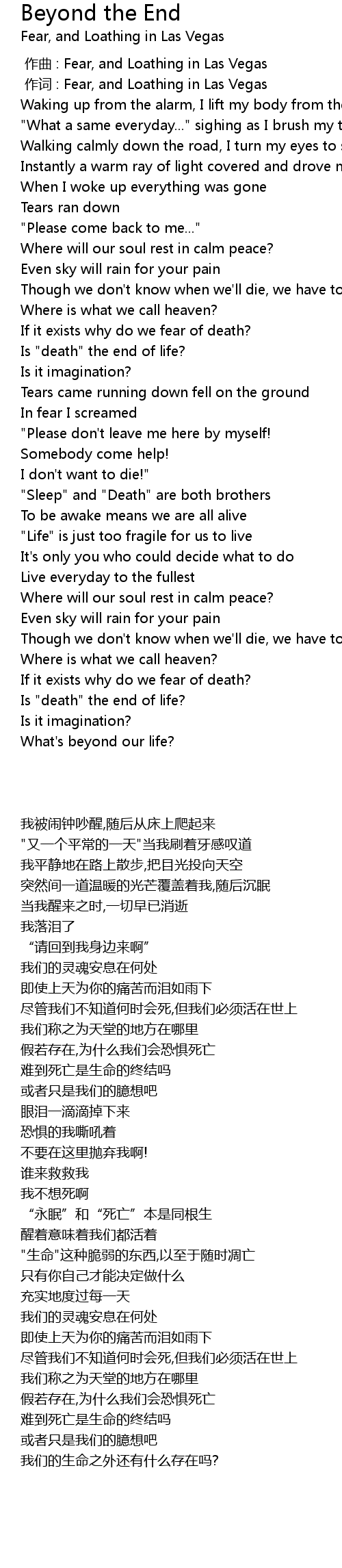 | [03:13.73] | If it exists why do we fear of death? |