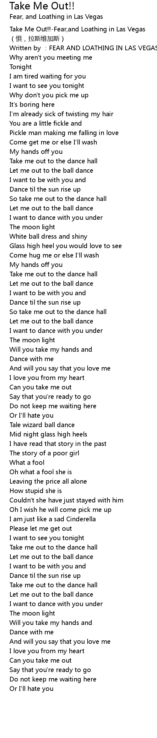 | [00:00.171] | Take Me Out!! Fear, and Loathing in Las Vegas jù, lā sī wéi jiā sī |