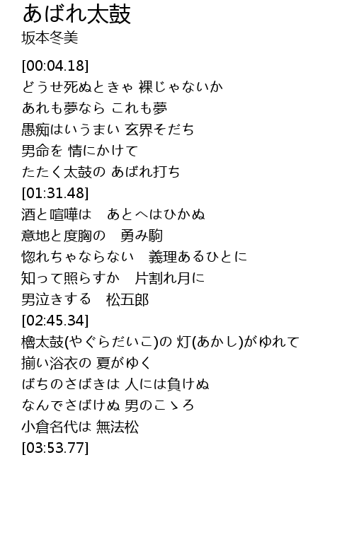 | [01:17.46] | たたく太鼓の あばれ打ち |