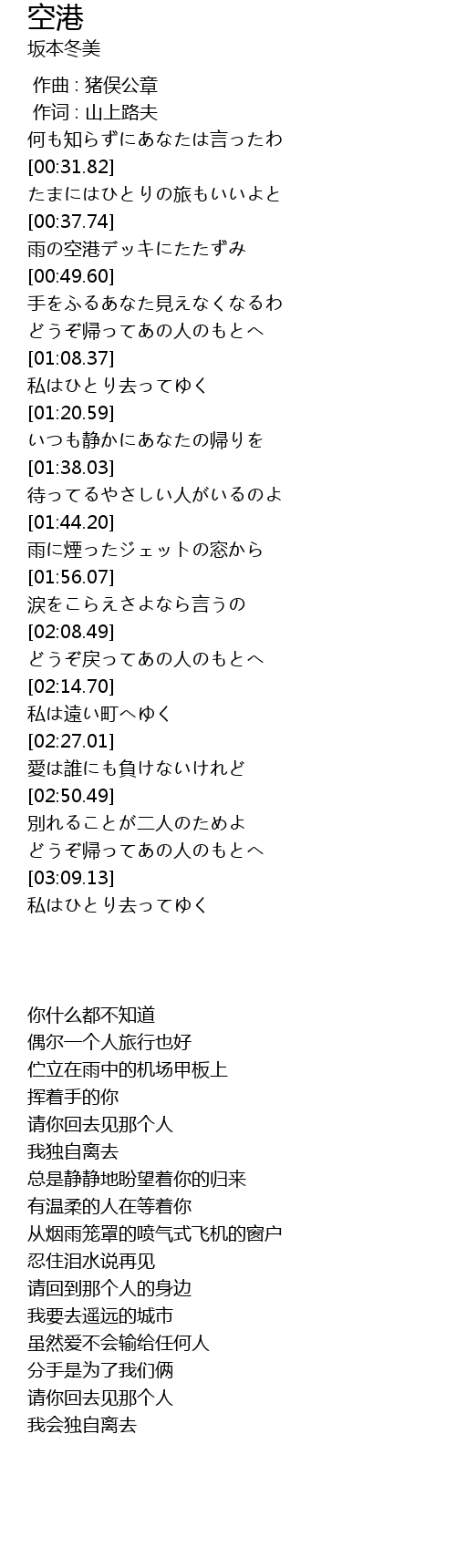 | [00:38.43] | 雨の空港デッキにたたずみ |