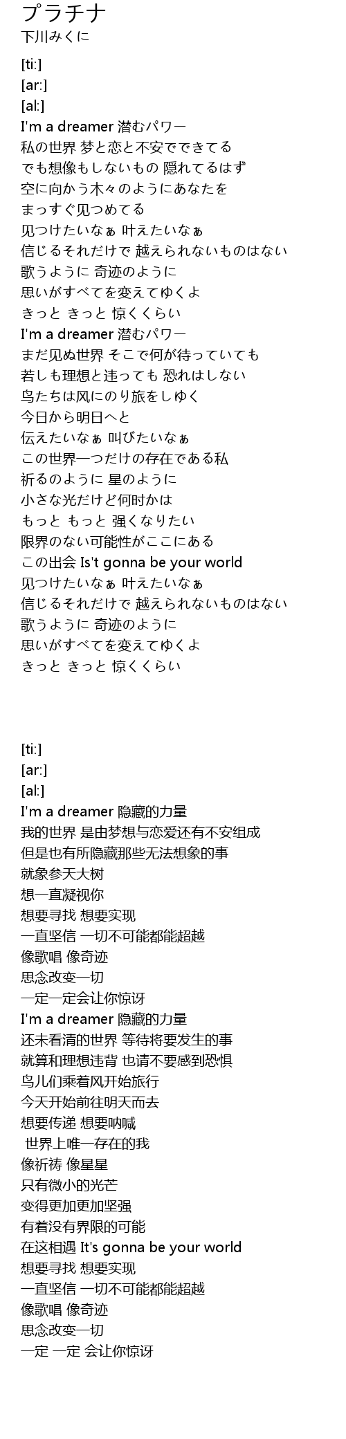 | [00:02.93] | I'm a dreamer 潜むパワー |