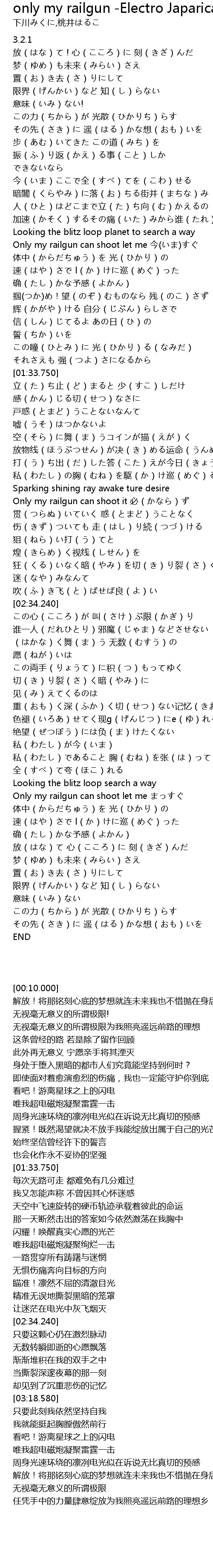 | [03:34.300] | Only my railgun can shoot let me まっすぐ |