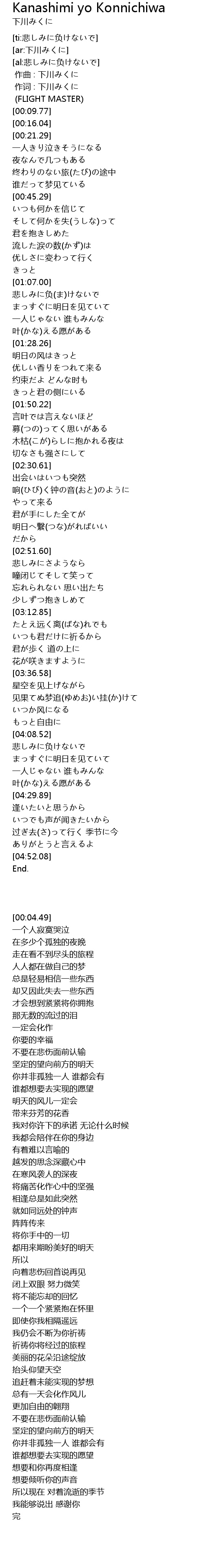 | [02:44.34] | 明日へ繋(つな)がればいい |