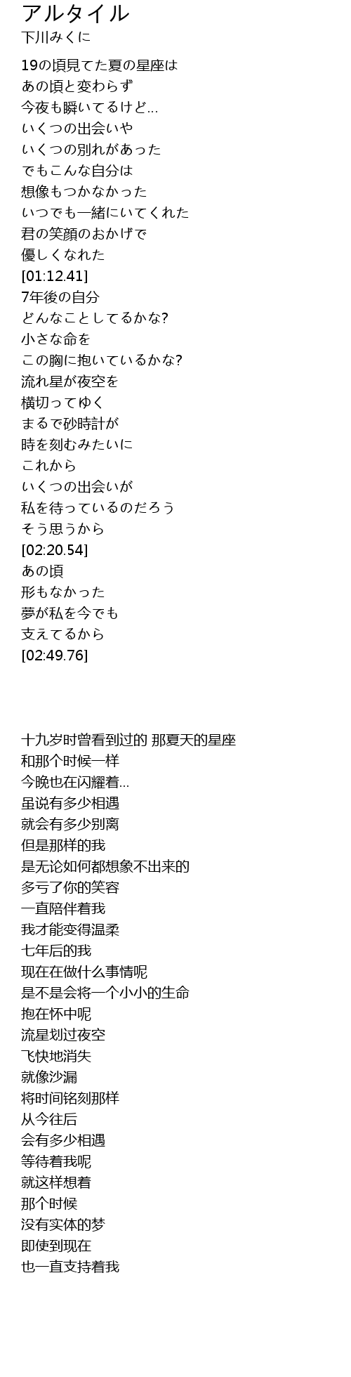 | [00:11.55] | 19の頃見てた夏の星座は |
