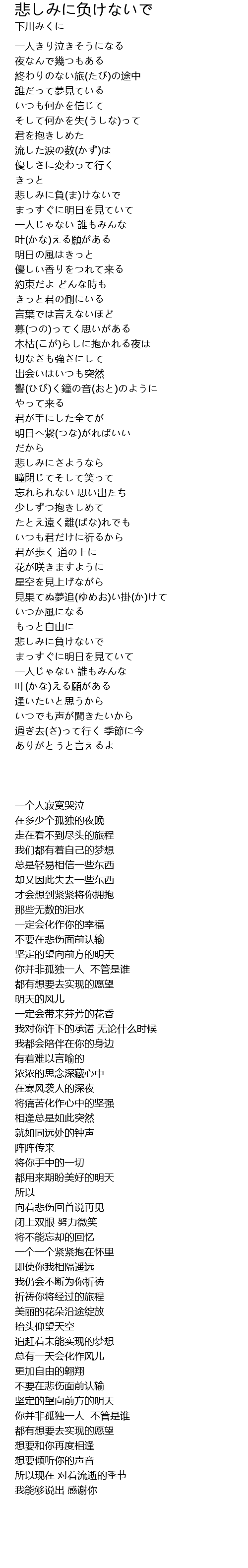 悲しみに負(ま)けないで |