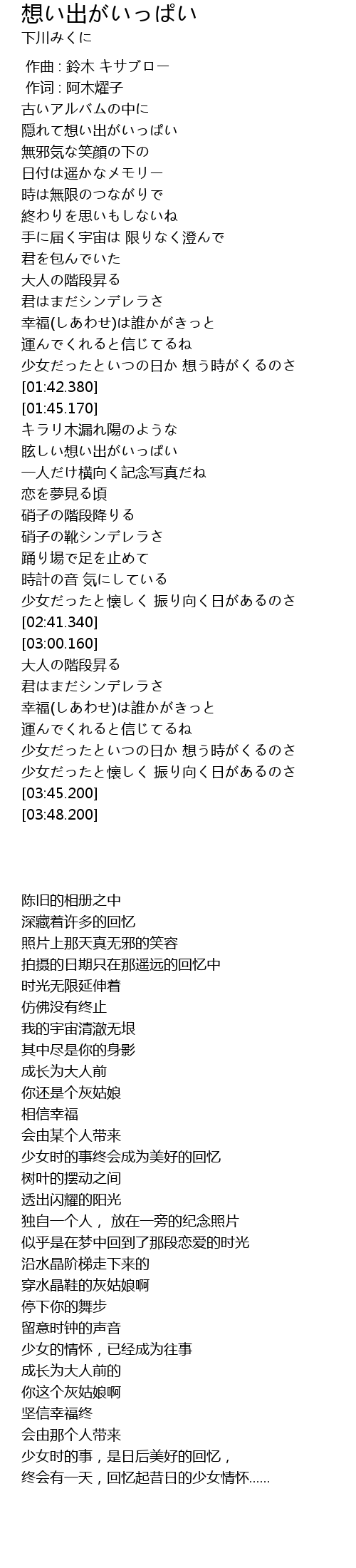 | [01:52.790] | 眩しい想い出がいっぱい |