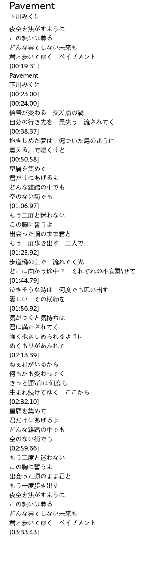 | [03:26.71] | 君と歩いてゆく ペイブメント |