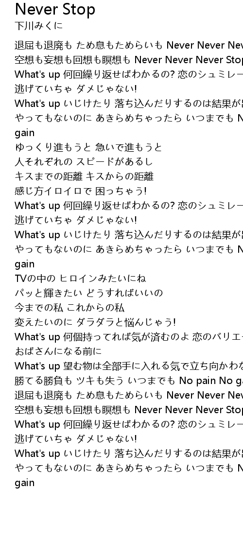 | kōng xiǎng wàng xiǎng huí xiǎng míng xiǎng Never Never Never Stop | |