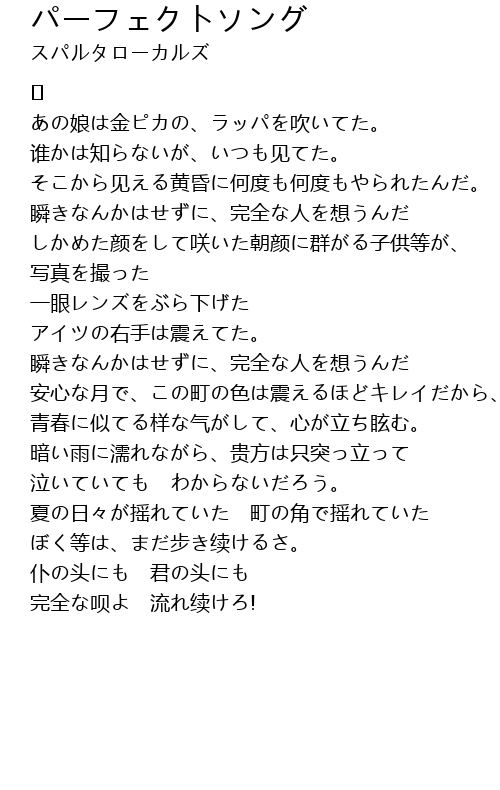 | Song | パーフェクトソング |