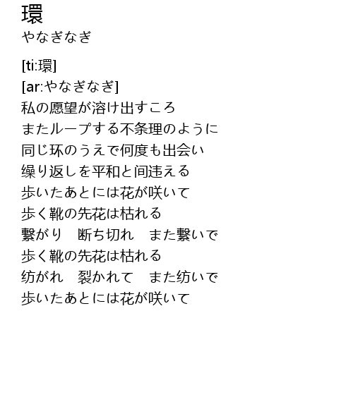 | [01:49.629] | 纺がれ 裂かれて また纺いで |