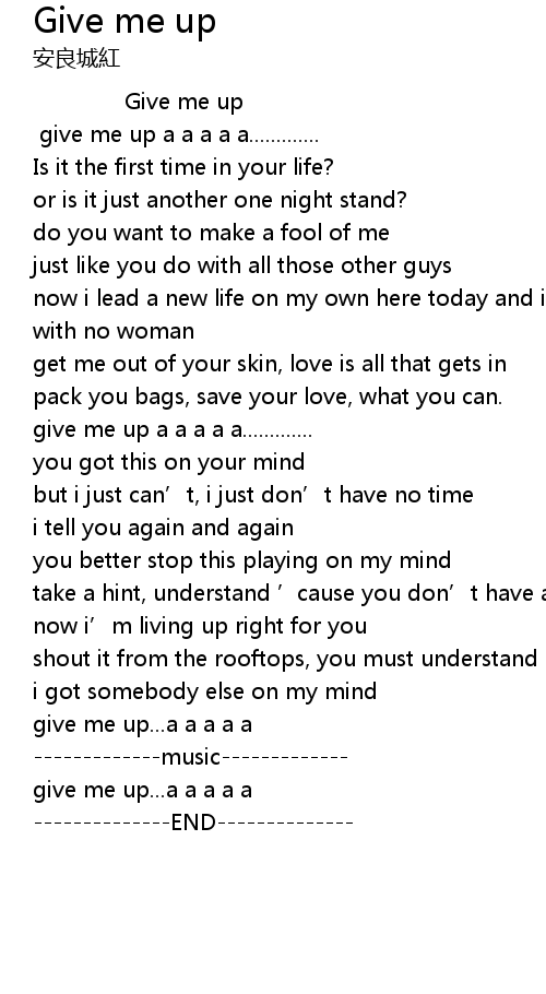 | [03:00.32] | give me up... a a a a a |