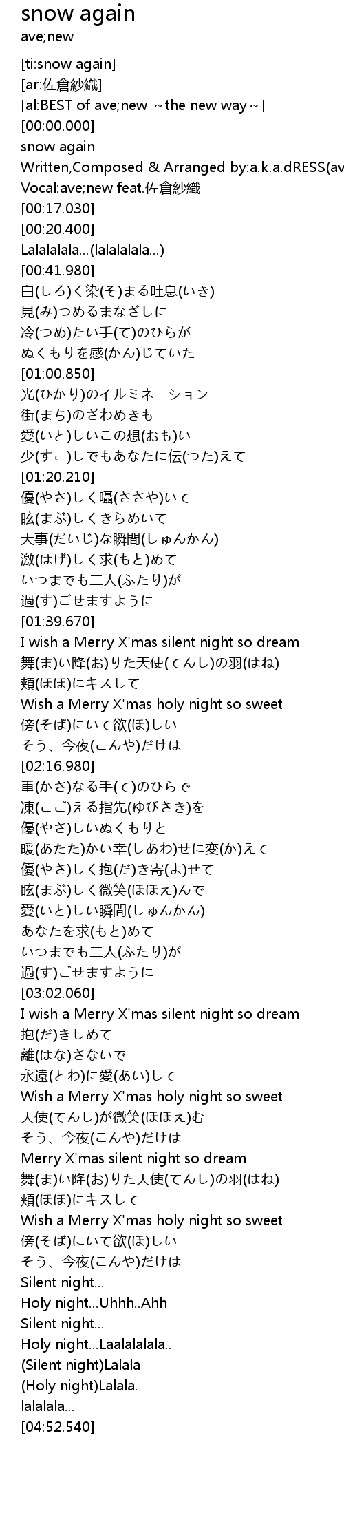 | [00:12.660] | Vocal:ave;new feat.佐倉紗織 |