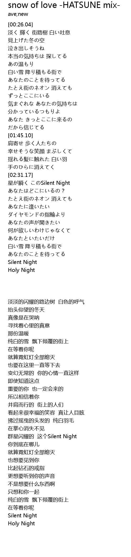 | [02:32.50] | 星が瞬く このSilent Night |