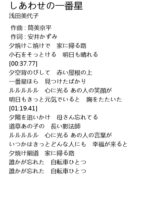 | [01:27.68] | 夕陽を追いかけ 母さん忘れてる |
