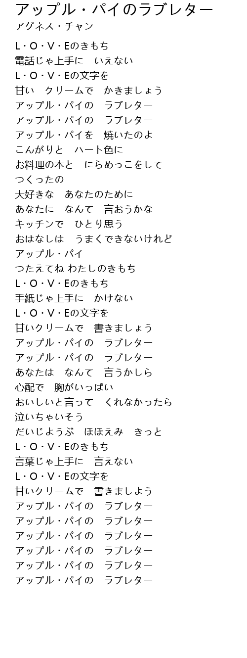 | [00:19.31] | アップル・パイの ラブレター |