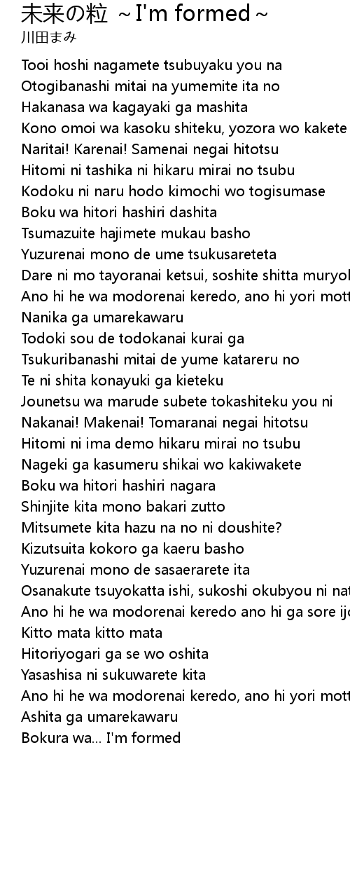 | Hitomi ni tashika ni hikaru mirai no tsubu | |