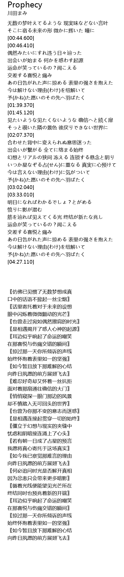 | [03:51.310] | 运命が笑っているの?闻こえる 交差する喜悦と痛み |
