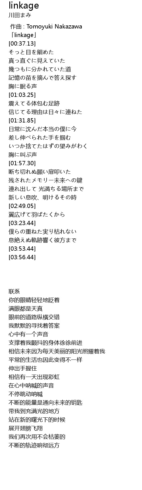 | [00:01.13] | 「linkage」 |