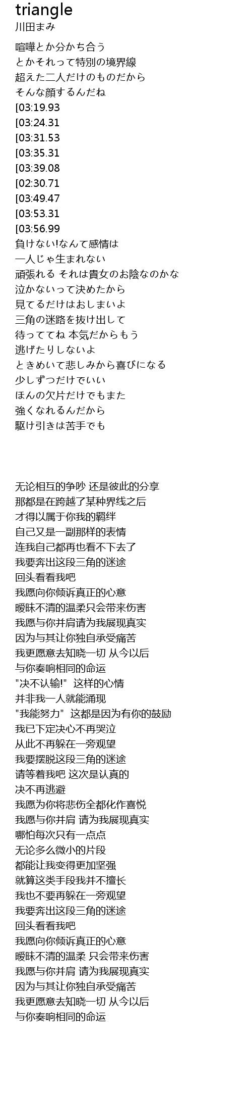 | [00:54.36][03:24.31] | 三角の迷路を駆けてゆく |