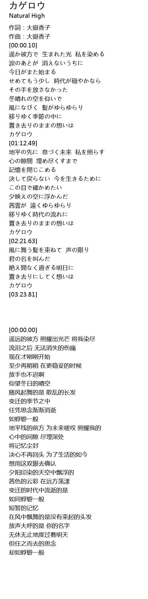 | [02:00.96] | 茜雲が 遠くゆらゆらり |