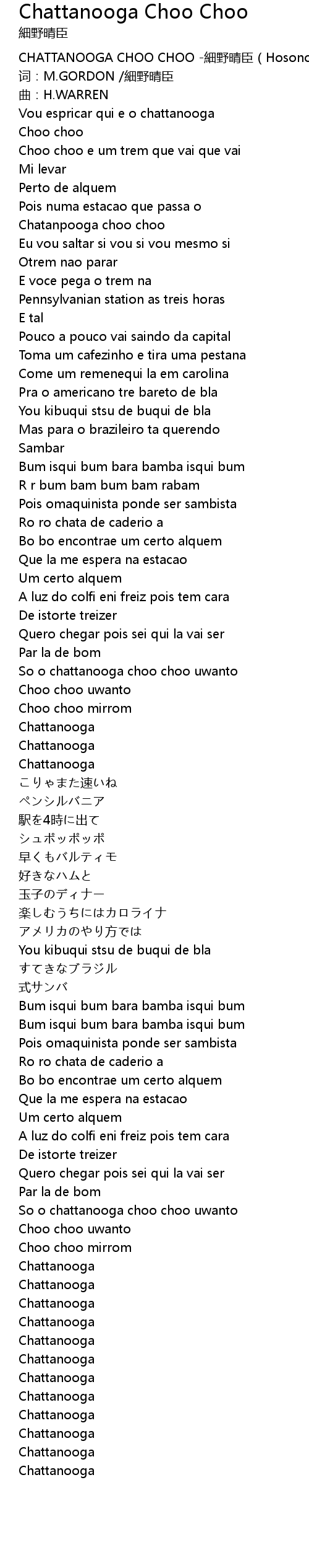 | [00:00.00] | CHATTANOOGA CHOO CHOO xì yě qíng chén Hosono |