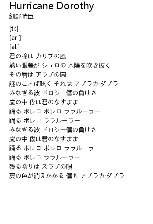 | [01:02.50] | みなぎる波 ドロシー僕の負けさ |