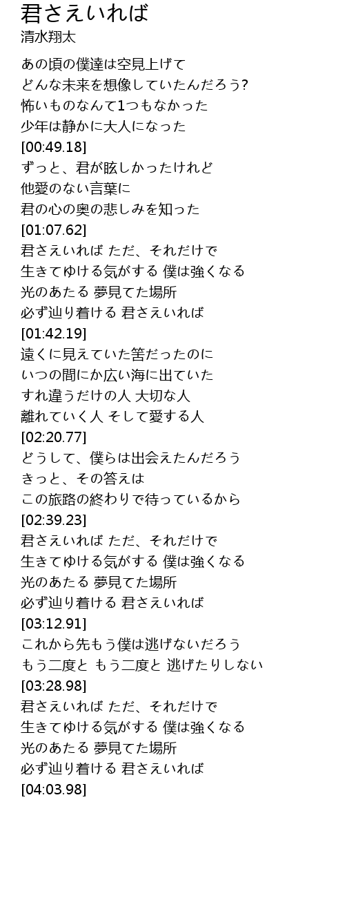 | [03:29.87] | 君さえいれば ただ、それだけで |