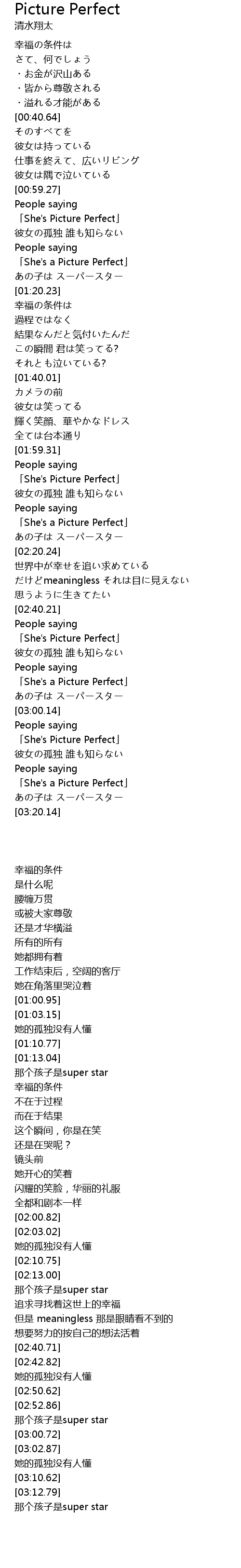 | [03:12.79] | 「She's a Picture Perfect」 |