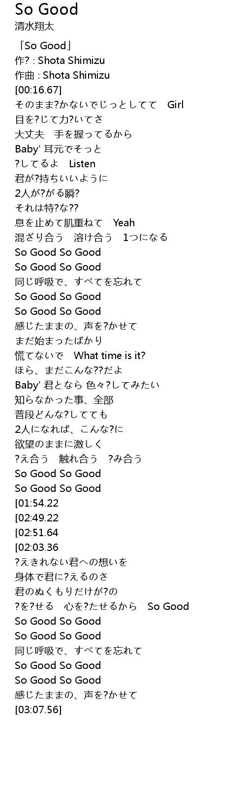 | [02:58.37][02:49.22][01:59.07] | So Good So Good |