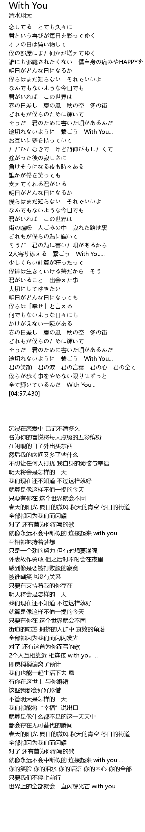 | [01:34.630] | 途切れないように 繋ごう With You... |