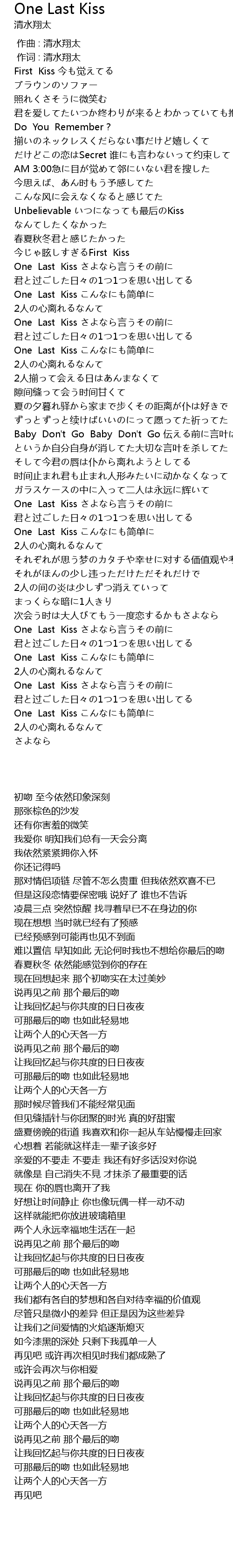 | [02:28.48] | One Last Kiss さよなら言うその前に |