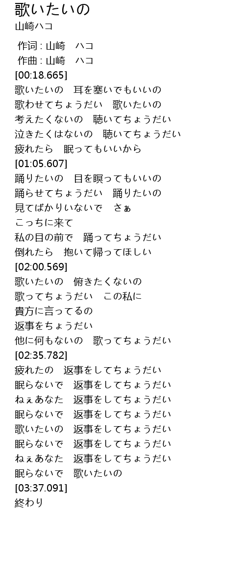 作词 : 山崎 ハコ |