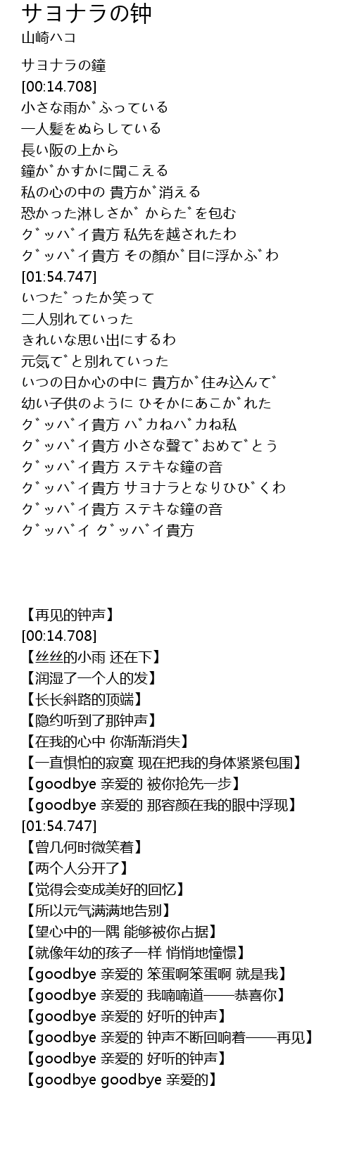 | [04:00.841] | グッバイ貴方 ステキな鐘の音 |