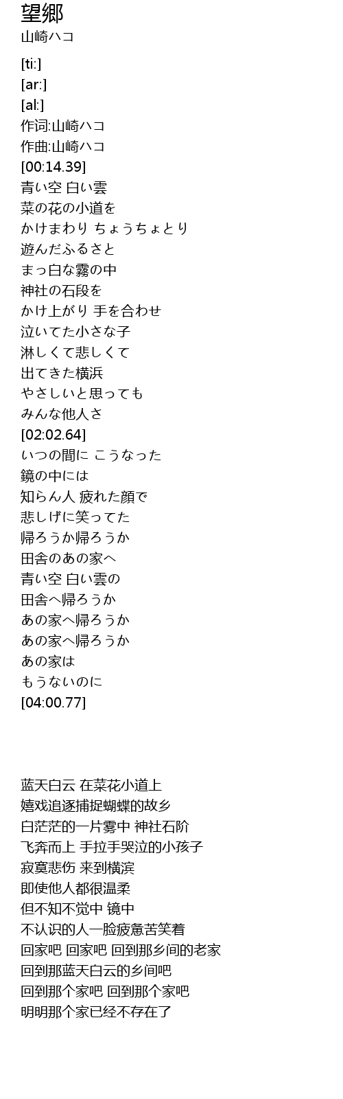 作词:山崎ハコ |