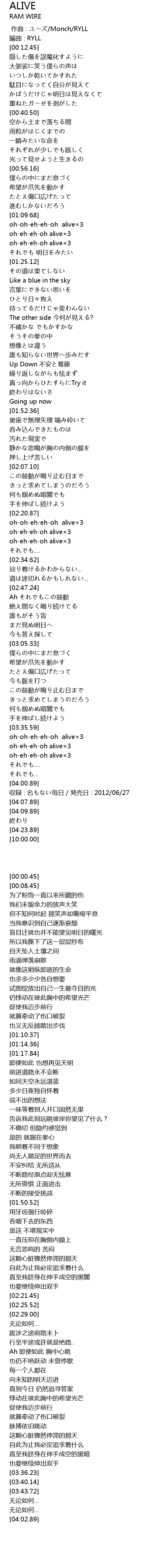 | [03:36.23] | oh-oh-eh-eh-oh alive×3 |