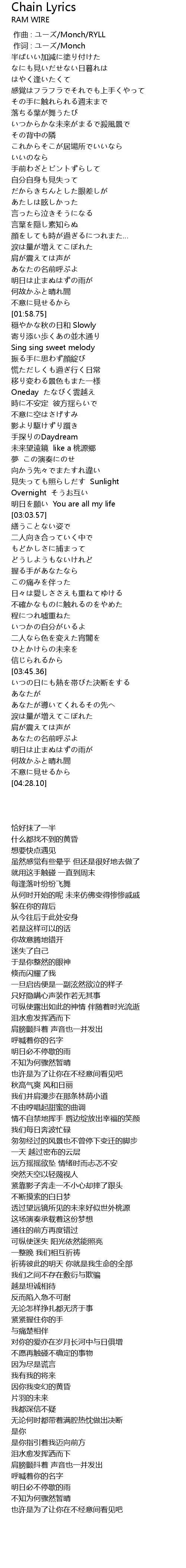 | Song | Chain Lyrics |