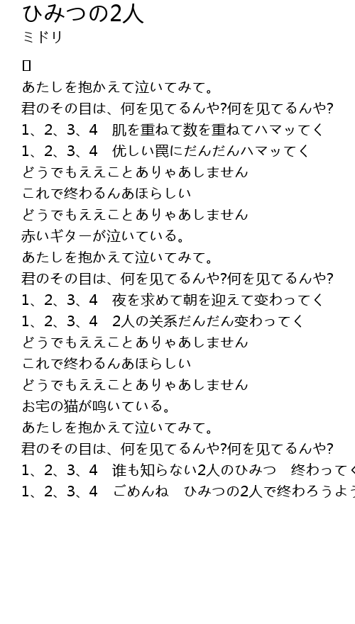 | 1、2、3、4 ごめんね ひみつの2人で终わろうよう。 |